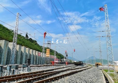 8月2日,記者在寧德汽車基地鐵路專用線與衢寧鐵路對接的倉西三嶼站看到,工人們頂著烈日正在進行鐵路動力線接觸網的檢修作業(yè),鐵路專用線施工也進入掃尾沖刺階段,為確保...…